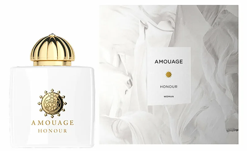 Парфюмерная композиция Amouage Honour women состоит их верхних нот кориандра, перца и ревеня; нот сердца: гвоздики, жасмина, гардении, мексиканской туберозы и ландыша; нот базы: ветивера, опопонакса, амбры, ладана и кожи.