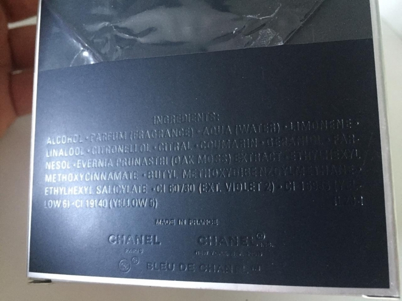 Bleu de Chanel Chanel — это аромат для мужчин, он принадлежит к группе древесные фужерные. Bleu de Chanel выпущен в 2010 году. Парфюмер: Jacques Polge. Верхние ноты: Грейпфрут, Лимон, Мята и Розовый перец; средние ноты: Имбирь, Мускатный орех, Жасмин и Iso E Super; базовые ноты: Ладан, Ветивер, Кедр, Сандал, Пачули, Лабданум и Белый мускус.