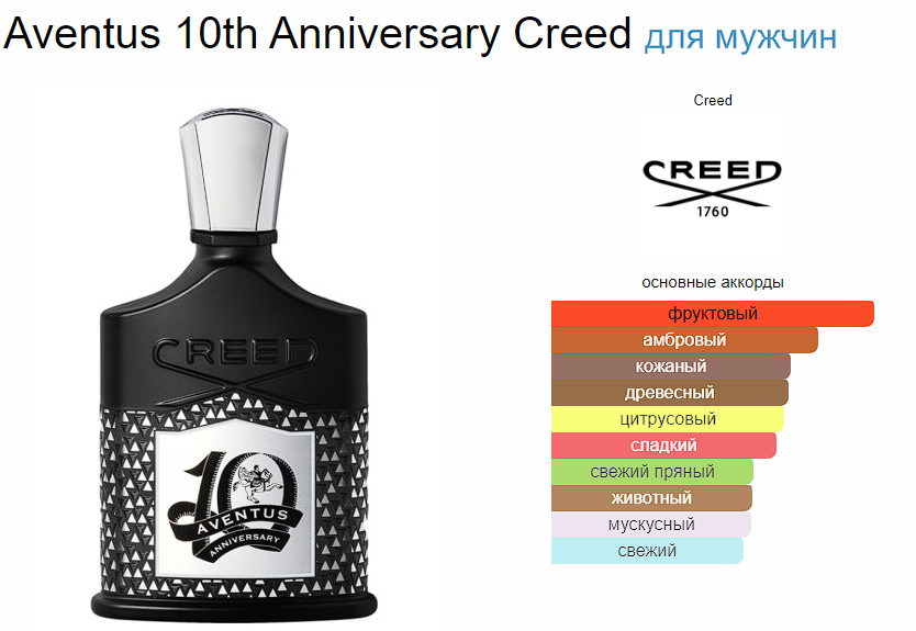 Марка Creed празднует 10-летие легендарного парфюма Aventus, выпуская обновленную композицию Creed Aventus 10th Anniversary. Дизайн специально разработанного флакона выполнен в новом «металлическом» стиле с историческими мотивами. Название парфюма выведено лентой для шитья, что является отсылкой к истории дома, известного своими моделями одежды. Серебряная крышка напоминает о богатом наследии бренда, превращая аромат в настоящий коллекционный артефакт.