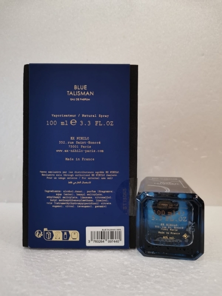 Ex Nihilo Blue Talisman — древесно-фруктовый унисекс-парфюм, выпущенный в 2023 году французским парфюмерным домом Ex Nihilo в честь своего десятилетия. Созданный как гипнотический драгоценный камень, Blue Talisman воплощает в себе лучшее из ноу-хау Ex Nihilo в обонятельном заявлении. Ультрасовременный аромат, символ бесконечной духовной энергии, выраженный тонкой свежестью имбиря, смягченной абстрактными нотами мускуса и амбры.