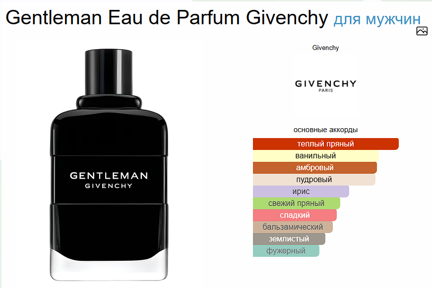 Gentleman Eau De Parfum – элитная парфюмерная вода с пряно-восточным ароматом для мужчин, выпущенная в 2018 году знаменитым модным домом Givenchy из Франции. Невероятно стильный современный аромат Gentleman Eau De Parfum – новое прочтение выдающегося, уникального мужского парфюма Givenchy Gentleman 1974 года выпуска, считающегося классикой роскошных ароматов бренда.