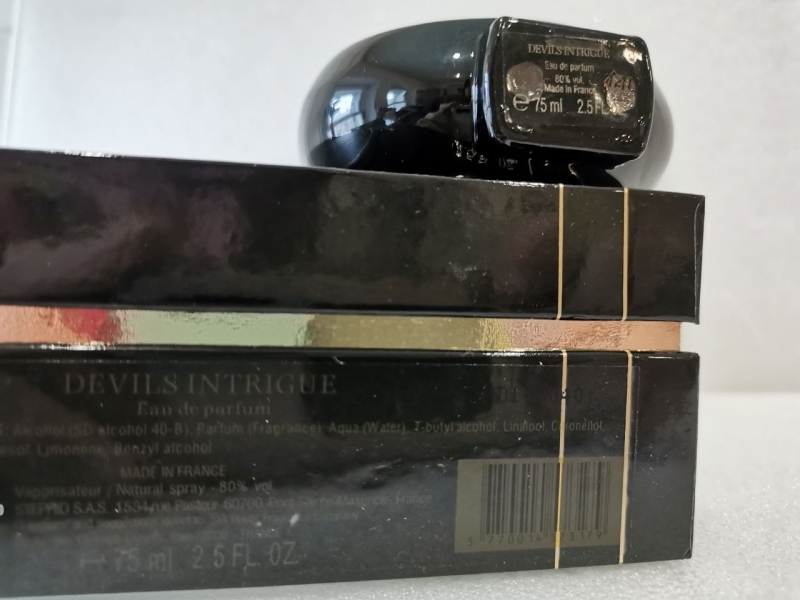 Devil's Intrigue — тонкий, волнующий и интригующий женский цветочно-древесный аромат окутанный легкой мускусной дымкой. Парфюм выпущен в 2018 году французским нишевым парфюмерным брендом Haute Fragrance Company в рамках его «Азиатской коллекции». Округлый угольно-черный дизайнерский флакон, украшенный тематическим цветным принтом, подчеркивает оригинальность заключенного в нем парфюма. Созданный парфюмером Бенуа Бержиа аромат в верхнем аккорде дарит неожиданное сочетание сладкого османтуса и шелковисто-пряных оттенков белого чая. В сердце композиции пьянящий пряно-медовый аромат апельсинового цвета звучит на подложке из древесно-сливочных оттеков сандала. Тогда как финальный аккорд отзывается теплом древесных нот, бархатисто-пряными оттеками кашемирового дерева и легкой сладостью ванили.