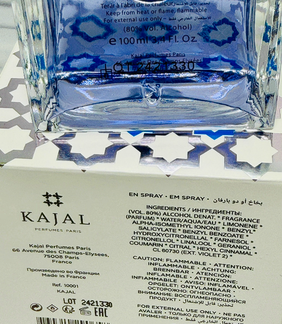 Kajal Eau de Parfum Kajal — это аромат для женщин, он принадлежит к группе восточные цветочные. Kajal Eau de Parfum выпущен в 2014 году. Парфюмер: Christian Carbonnel. Верхние ноты: Калабрийский бергамот, Мандарин и Лимон; средние ноты: Турецкая роза и Корень ириса; базовые ноты: Мускус, Мадагаскарская ваниль, Бобы тонка, Амбра и Сандал.