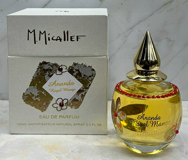 Ananda Royal Mango M. Micallef — это аромат для женщин, он принадлежит к группе цветочные фруктовые сладкие. Это новое издание: Ananda Royal Mango выпущен в 2025 году. Верхние ноты: Манго, Грейпфрут и Малина; средние ноты: Взбитые сливки, Цветок шелкового дерева и Карамель; базовые ноты: Ваниль, Пачули, Амбра и Мускус.