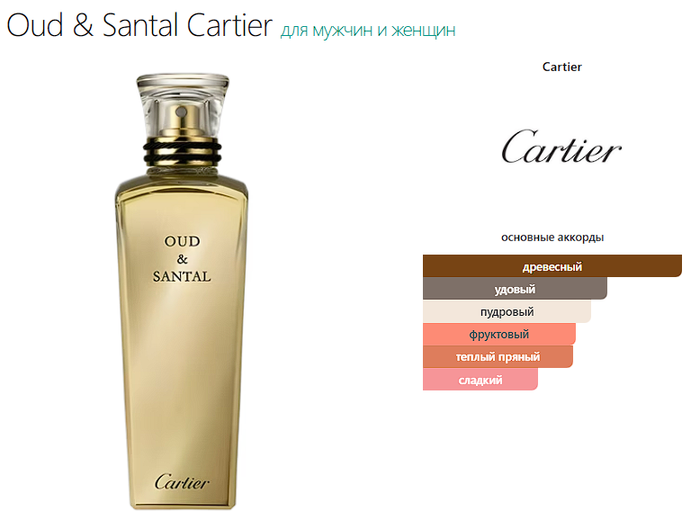 Oud & Santal Cartier — это аромат для мужчин и женщин, он принадлежит к группе древесные. Oud & Santal выпущен в 2016 году. Парфюмер: Mathilde Laurent.