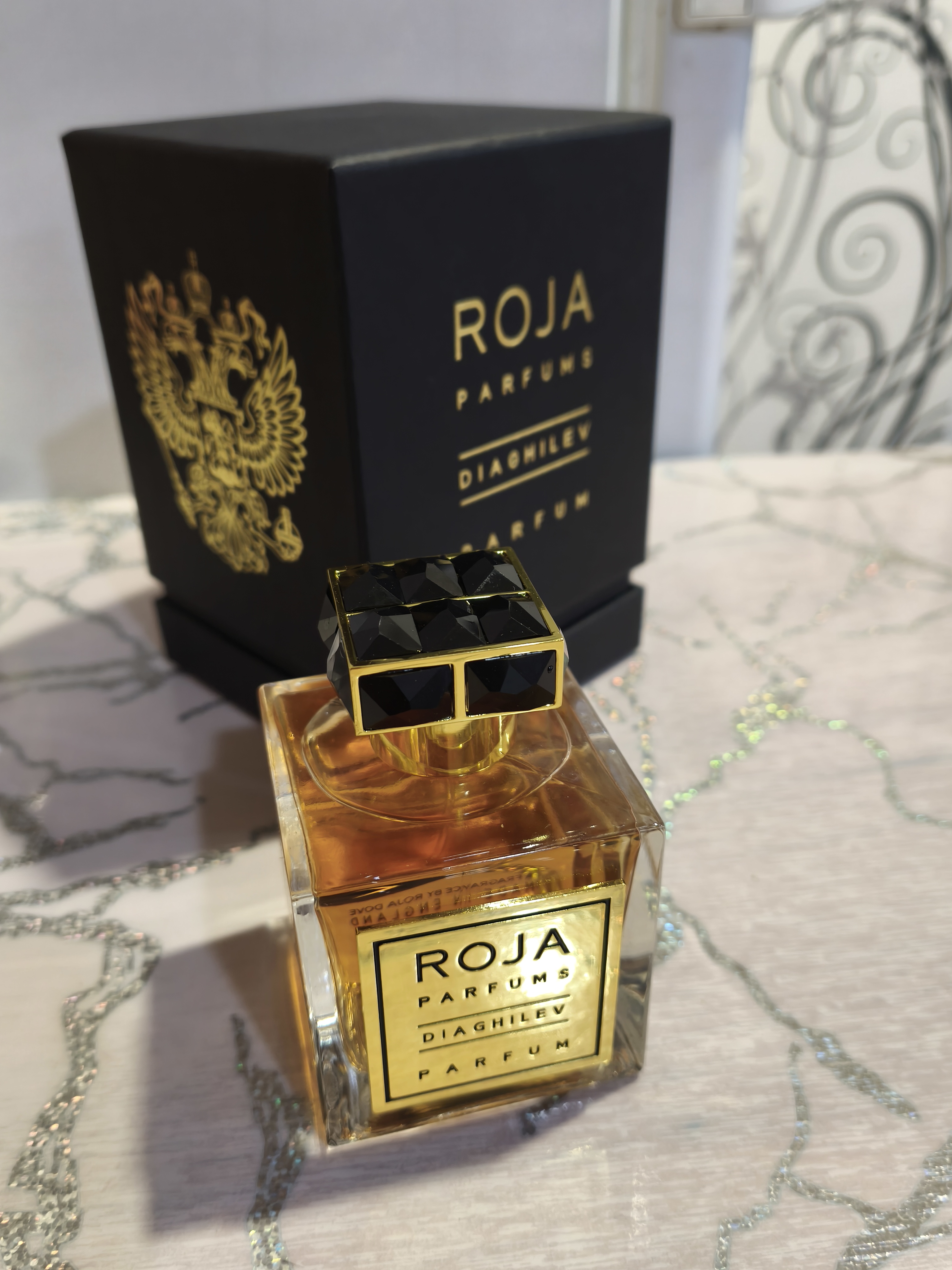 Diaghilev Roja Dove — это аромат для мужчин и женщин, он принадлежит к группе шипровые фруктовые. Парфюмер: Roja Dove. Верхние ноты: Кумин, Бергамот, Тархун, Лимон, Апельсин и Лайм; средние ноты: Персик, Иланг-иланг, Жасмин, Роза, Гелиотроп, Фиалка, Тубероза и Черная смородина; базовые ноты: Дубовый мох, Цибетин, Кожа, Мускус, Гвоздика (пряность), Лабданум, Амбретта, Перуанский бальзам, Бензоин, Пачули, Ваниль, Ветивер, Гваяк, Стиракс, Мускатный орех, Кедр и Сандал.