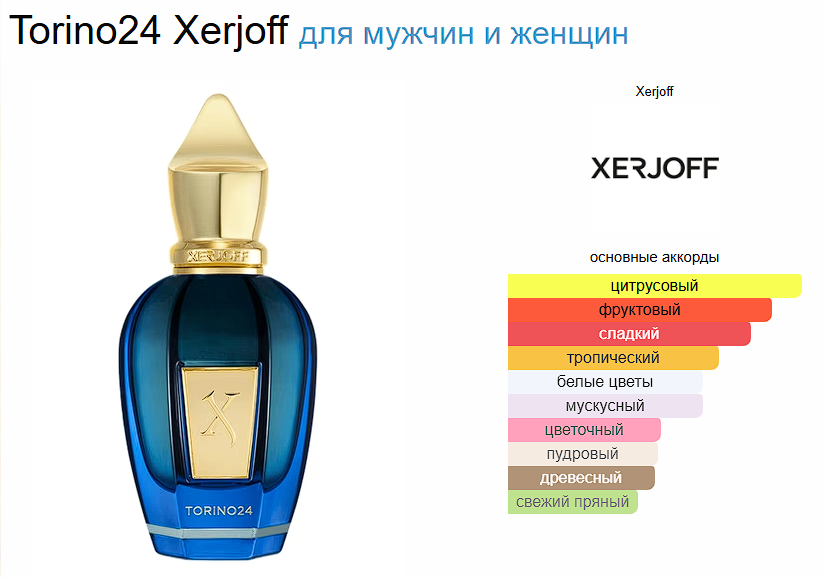 Torino24 Xerjoff — это аромат для мужчин и женщин, он принадлежит к группе . Это новое издание: Torino24 выпущен в 2024 году. Верхние ноты: Манго, Бергамот, Мандарин и Слива; средние ноты: Цветок апельсина, Розовый лотос и Стиракс; базовые ноты: Белый мускус, Мох и Пачули.